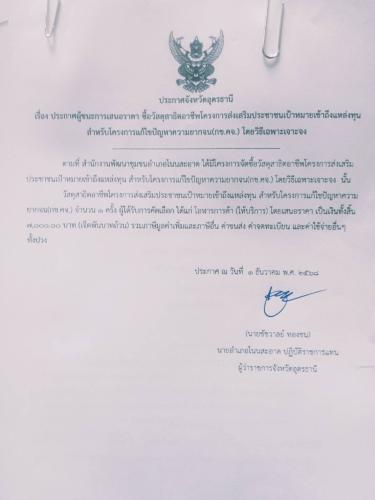ประกาศผู้ชนะเสนอราคาจัดซื้อวัสดุสาธิตอาชีพโครงการส่งเสริมประชาชนเป้าหมายเข้าถึงแหล่งทุน