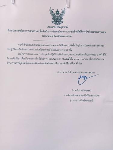ประกาศผู้ชนะเสนอราคาจัดซื้อจัดจ้างโครงการประชุมเชิงปฏิบัติการจัดทำและประสานแผนพัฒนาตำบล