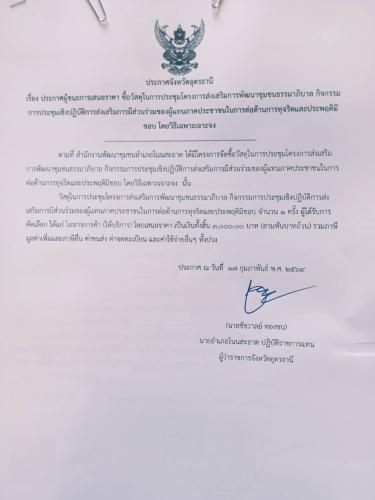 ประกาศผู้ชนะการเสนอราคาโครงการส่งเสริมการพัฒนาชุมชนธรรมาภิบาล